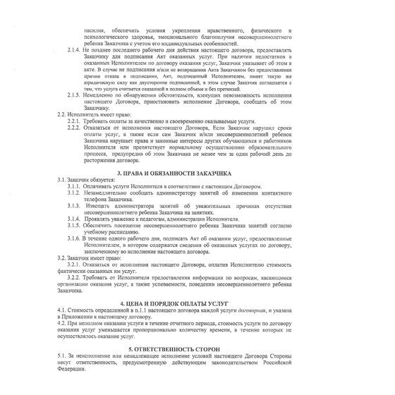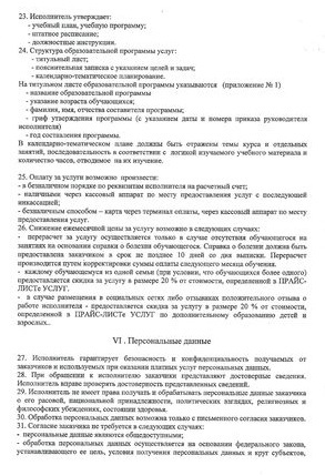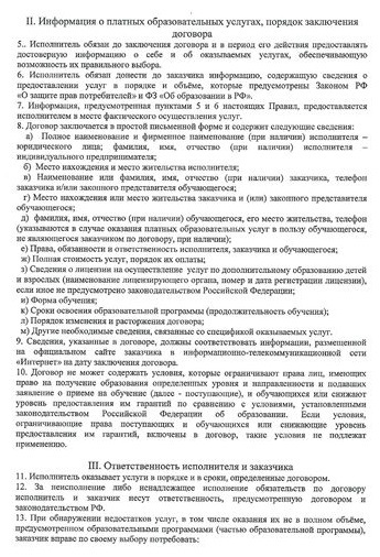 Договор о предоставлении платных услуг