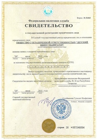 Свидетельство ООО