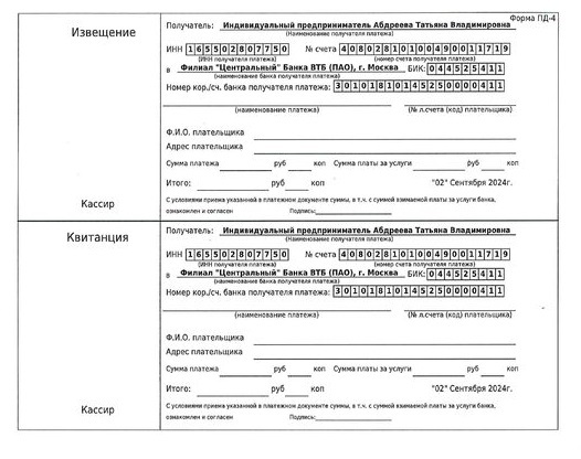 Квитанция на оплату