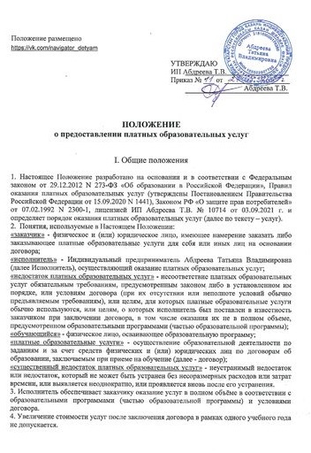 Положение о предоставлении платных услуг